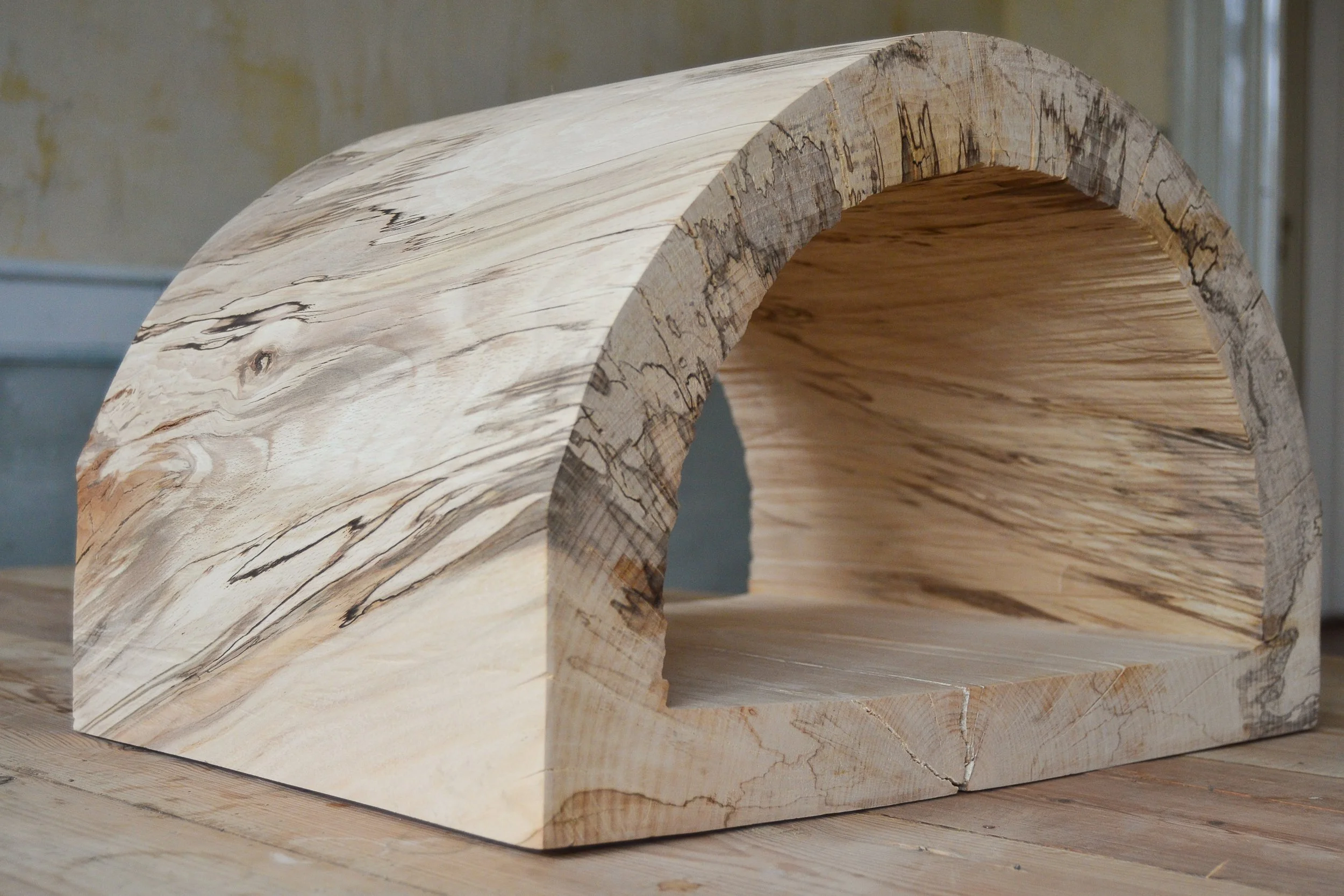 made as a small tabernacle, this stool supports an ongoing technical exploration of functional negative space as sacred space. With wood, a living material commonly known for endurance and stature, ever-present as a commodity in our world, it is remarkably pliable and forgiving to the hand worker. Beyond its life-sustaining and warmth-providing features, wood remains a rare material in our universe. The more cause for the creation and use of our stool, to make obvious the great reminder that nature is life and life is sacred.